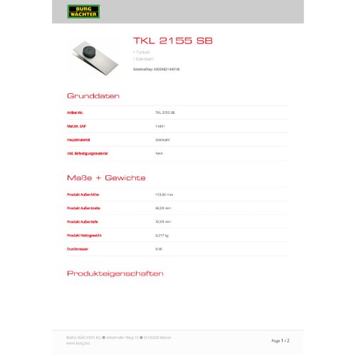 Eigenschaften "Burg-W Edelstahl-Türkeil TKL 2155 SB"