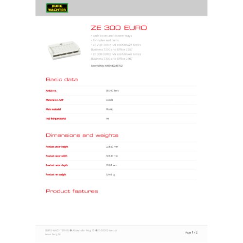 Eigenschaften "Burg-W Geldzähleinsatz ZE 300 EURO"