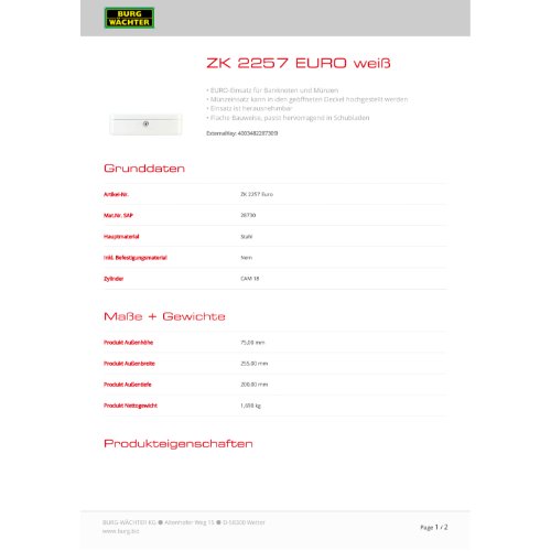 | Variante: | Burg-W Geldzählkassette ZK 2257 EURO |