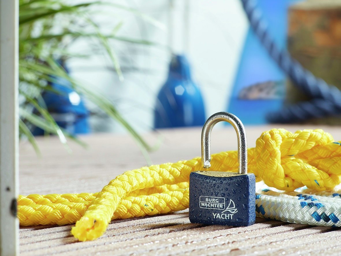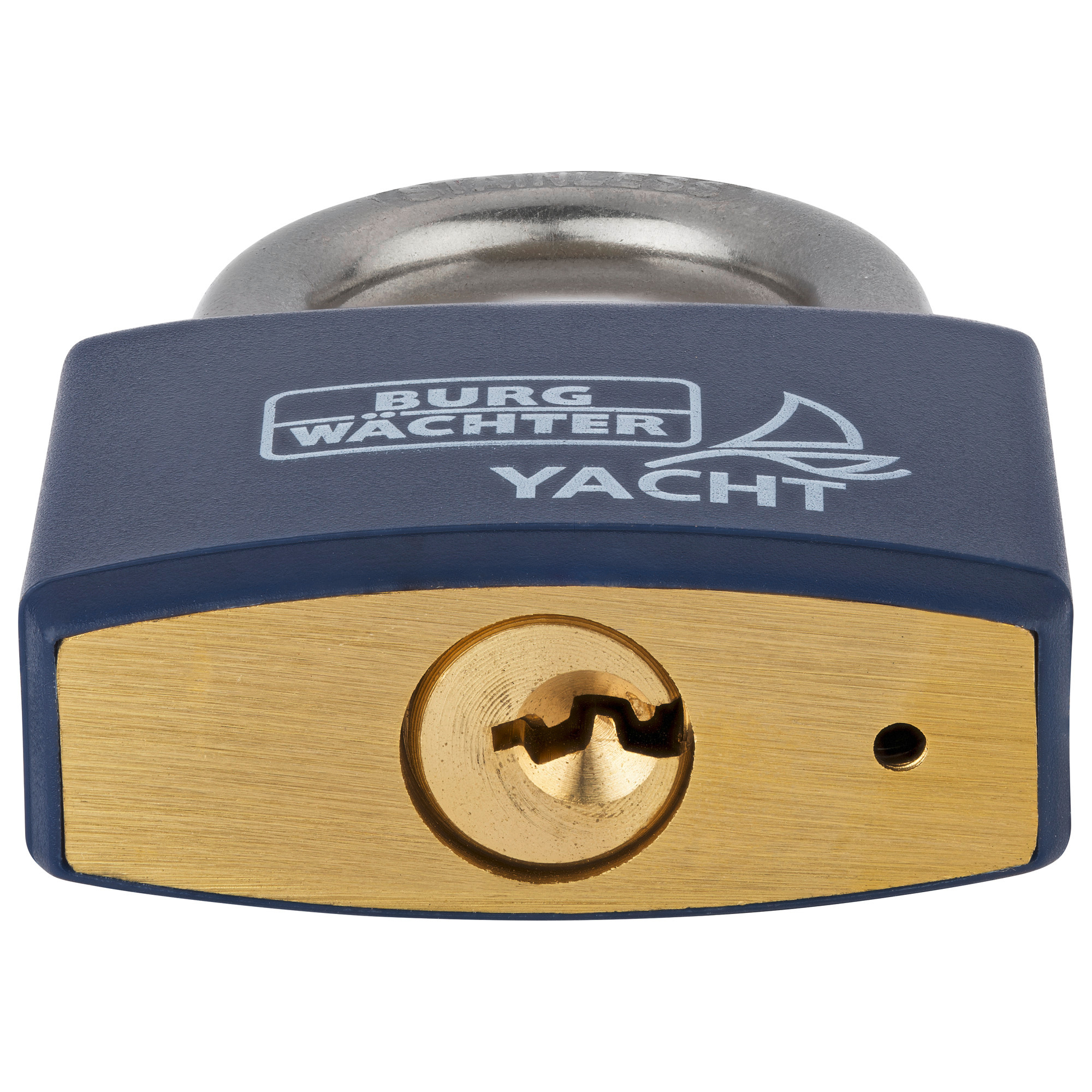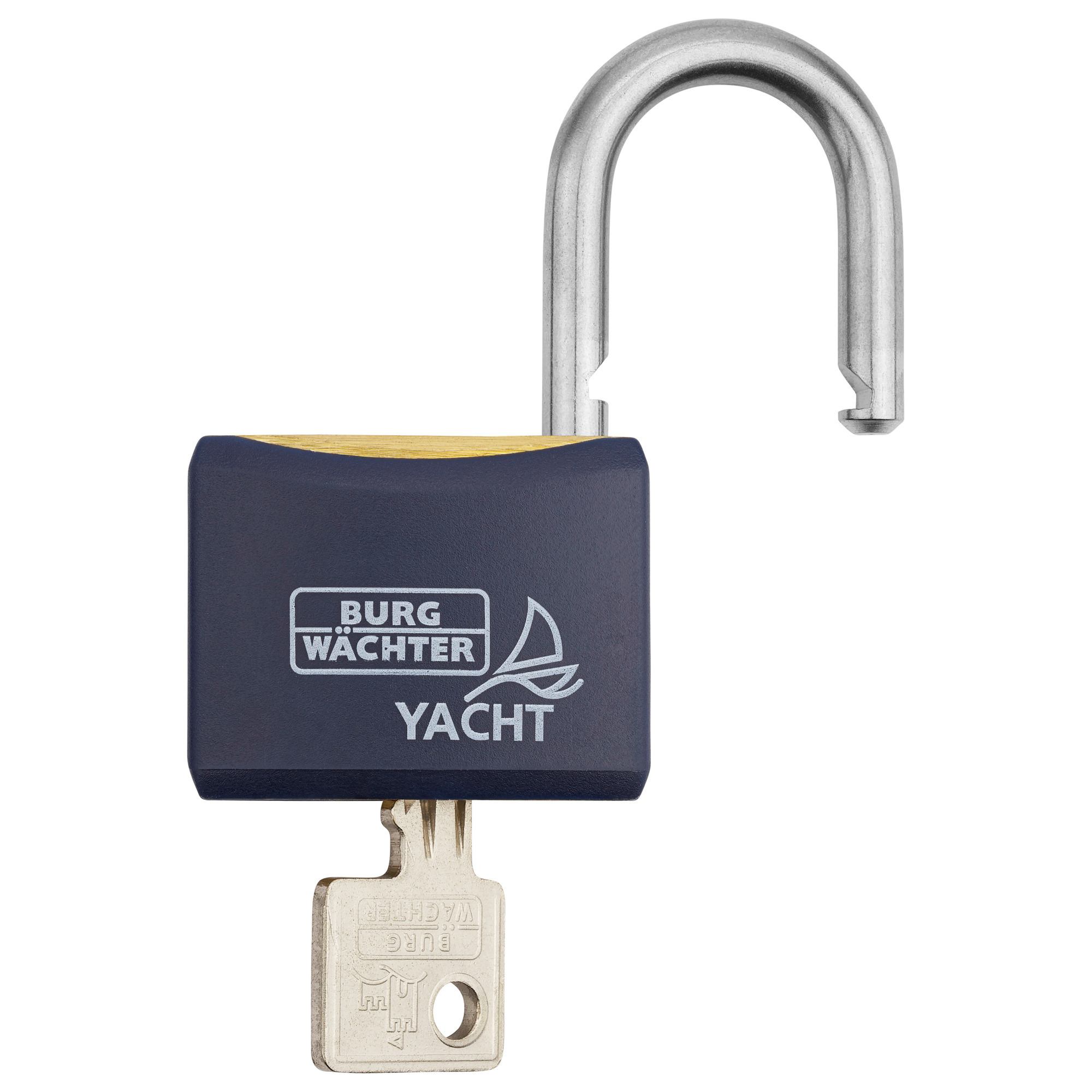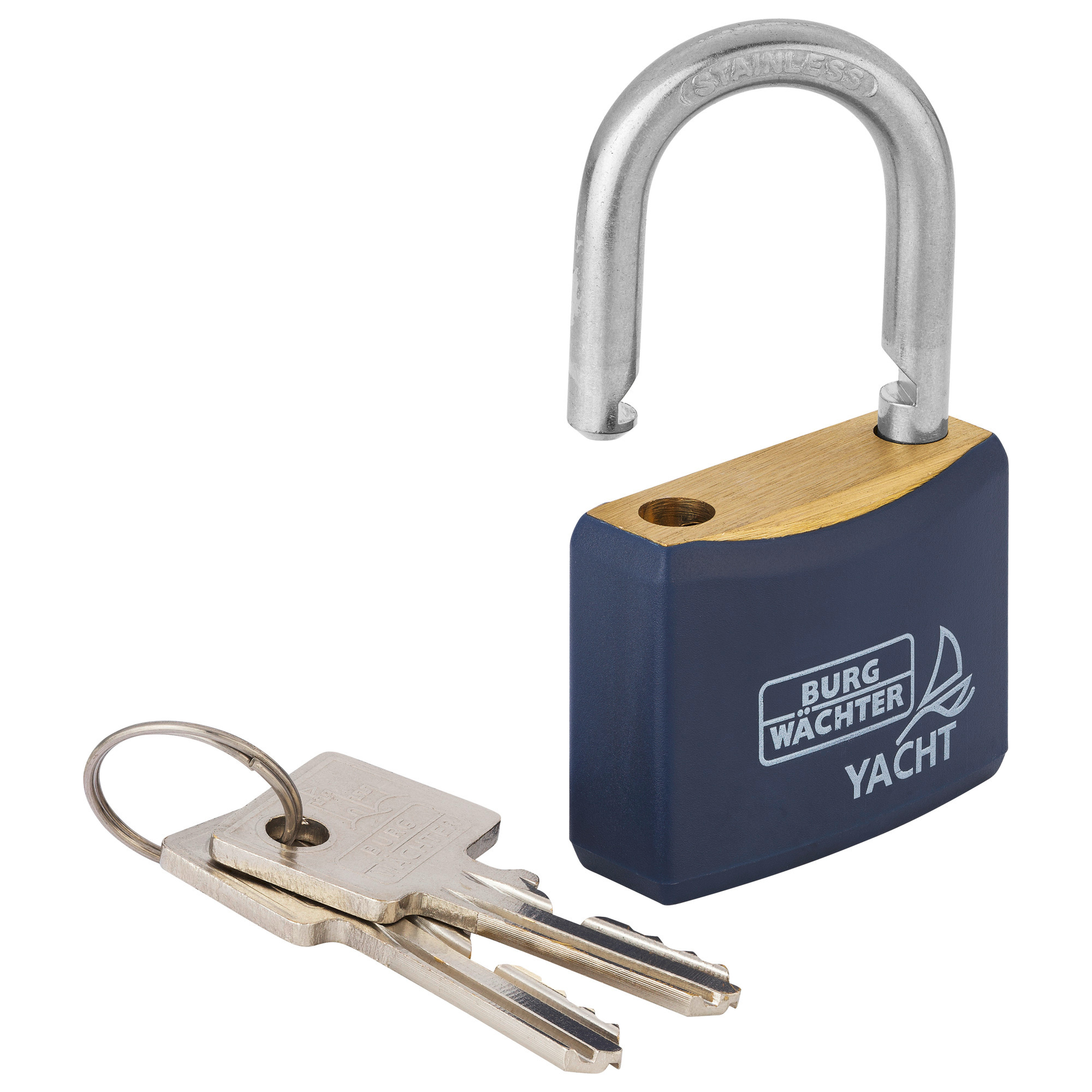 Kompakter MessingkorpusKunststoffmantel schützt empfindliche OberflächenEdelstahlbügel, doppelt verriegelt (ab Größe 30 mm)Innenwerk rostfrei