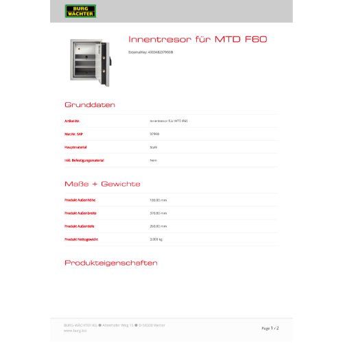 Eigenschaften "Burg-W Innentresor für MTD F60 IT MTD"