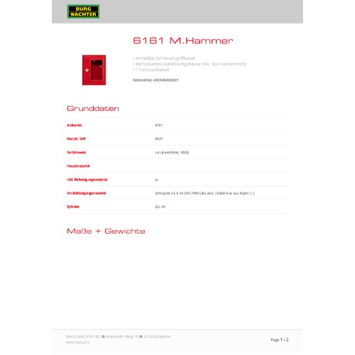 Produktinformationen "Burg-W Notschlüsselbox rot 6161 mit Scheibe u. Hammer"