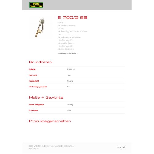 | Variante: | Burg-W Schlüssellochsperrer E 700/2 SB |