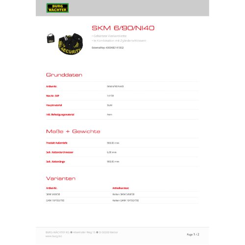 Eigenschaften "Burg-W Set Kette + Schloss SKM 6/90/Ni40"