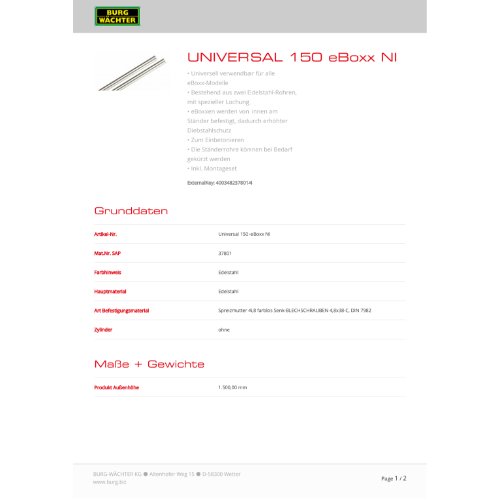 Eigenschaften "Burg-W Ständer für Paketbox (Paar) Universal 150 eBoxx Ni"