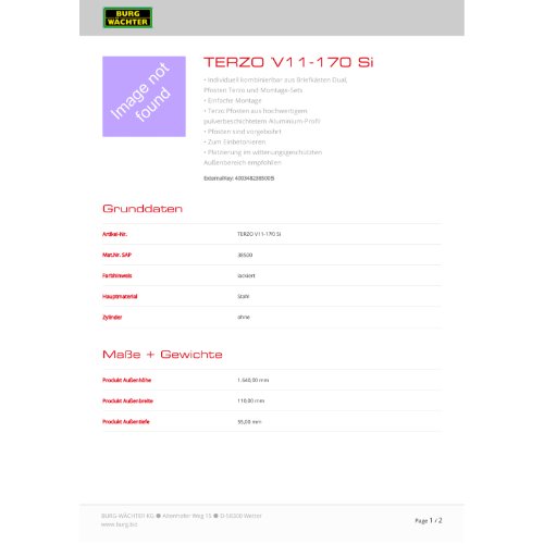 Eigenschaften "Burg-W Terzo-Standanlagen Pfosten V11-P Si"