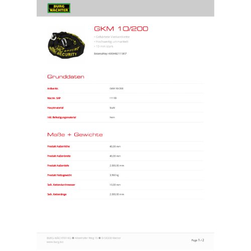 | Variante: | Burg-W Vierkantkette GKM 10/200 |