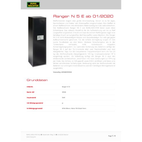 Eigenschaften "Burg-W Waffenschrank Ranger mit elektronischem Schloss N 5 E"