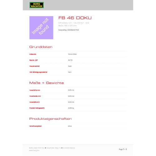 Eigenschaften "Burg-W Zubehör Fachboden FB 46 für Office-Doku, inkl. 4 Fachbodenträger"