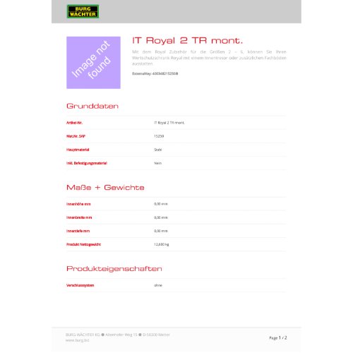Eigenschaften "Burg-W Zubehör Innentresor IT 2 TR montiert für Royal"