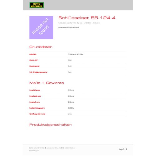 Eigenschaften "Burg-W Zubehör Tresore Schlüsselset 55-124-4"
