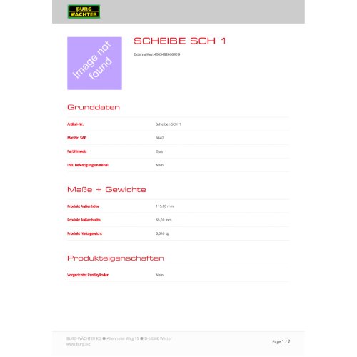 Eigenschaften "Burg-W Zubehör: lose Glasscheibe SCH1 für Notschlüsselbox"