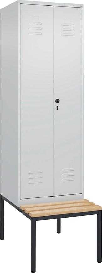 Garderobenschrank Classic PLUS mit untergebauter Sitzbank, Holzleisten