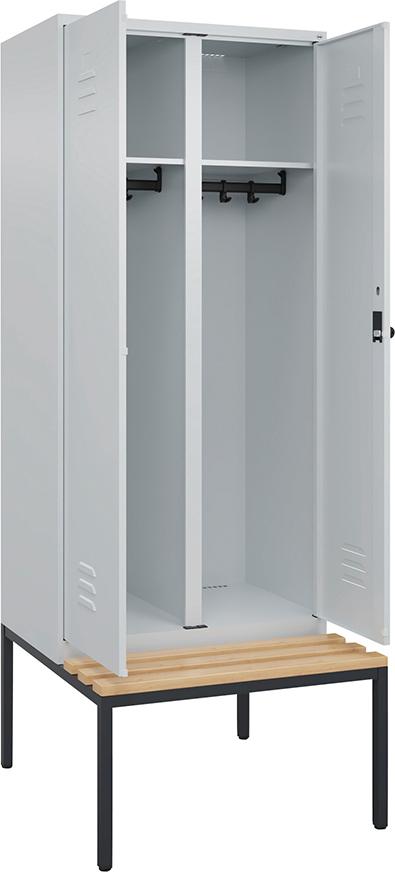Garderobenschrank Classic PLUS mit untergebauter Sitzbank, Holzleisten