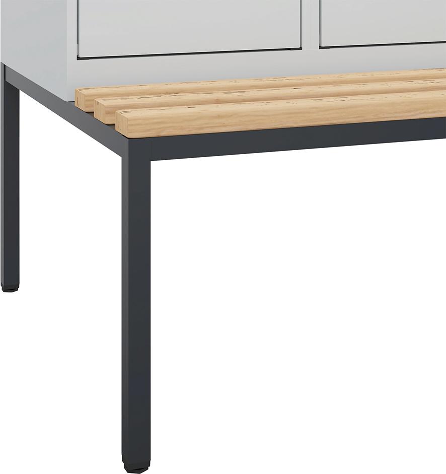 Garderobenschrank Evolo PLUS mit untergebauter Sitzbank (Holzleisten)
