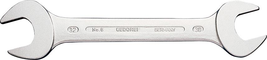 Doppel-Maulschlüssel Nr. 6<br /><br /><p>• Matt verchromt <br /> • Chrom-Vanadium-Stahl 31CrV3 <br /> • Geschmiedet <br /> • Maulstellung 15° abgewinkelt <br /> • DIN 3110, ISO 3318 <br /> • Hochwertige Industriequalität für harte Dauerbeanspruchung</p><br /><br /><b>Hersteller:</b> GEDORE Werkzeugfabrik GmbH & Co. KG, Remscheider Straße 149, 42899 Remscheid, DE, +492191596900, gedore.empfang@gedore.com