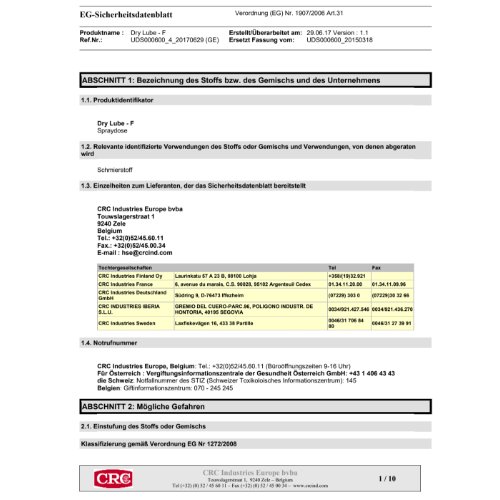 Hersteller: CRC Industries Europe, Suedring 9, 76473 Iffezheim, DE, +4972293030, info-DE@crcind.com