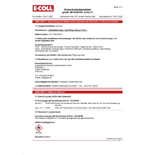 Eigenschaften "E-COLL Edelstahlreiniger- und -pflegespray 400ml E-COLL"