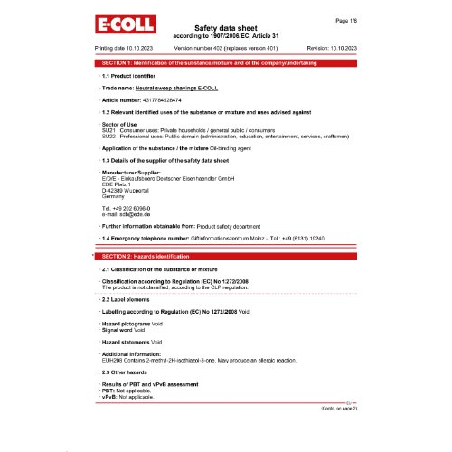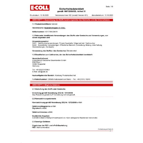 EUH208: Enthält 2-Methyl-2H-isothiazol-3-on. Kann allergische Reaktionen hervorrufen.