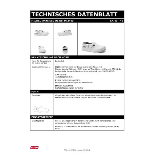 Eigenschaften "ELTEN Berufsclog MICHEL white ESD OB, Gr. 43"