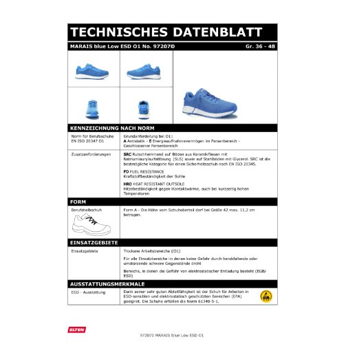 Eigenschaften "ELTEN Berufshalbschuh MARAIS blue Low ESD O1, Gr. 43"