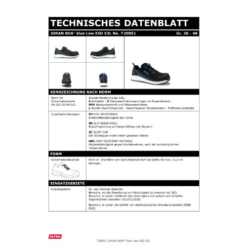Eigenschaften "ELTEN Sicherheitshalbschuh JORAN BOA® blue Low ESD S3L, Gr. 45"