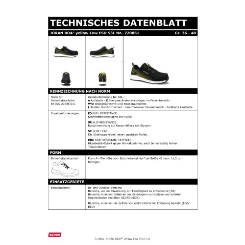 Eigenschaften "ELTEN Sicherheitshalbschuh JORAN BOA® yellow Low ESD S3L, Gr. 41"