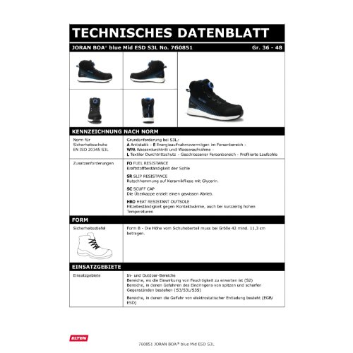 Eigenschaften "ELTEN Sicherheitsstiefel JORAN BOA® blue Mid ESD S3L, Gr. 45"