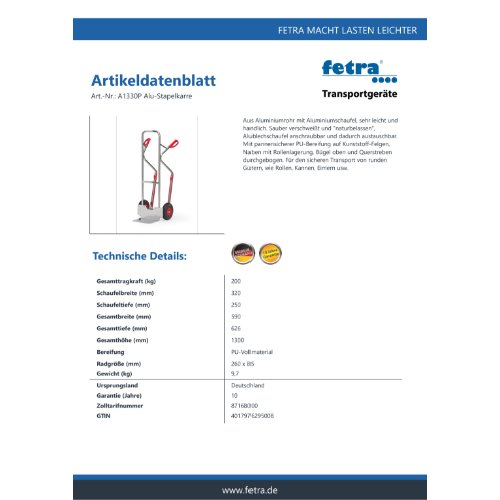 Eigenschaften "FETRA Alu-Stapelkarre A1330P"