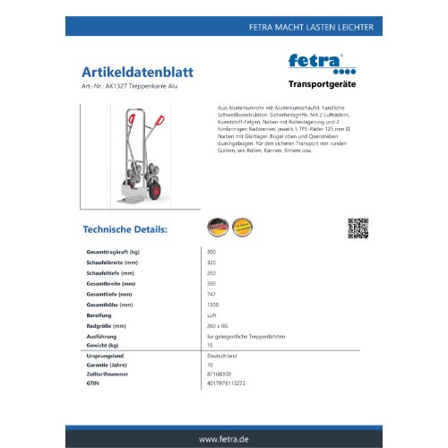 Eigenschaften "FETRA Alu-Treppenkarre AK1327"