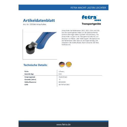 Eigenschaften "FETRA Anlaufrollen für Reifenkarren 2032 bis 2035, E2034A"