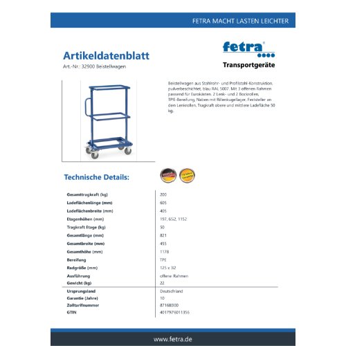 Eigenschaften "FETRA Beistellwagen 32900 - offener Rahmen"