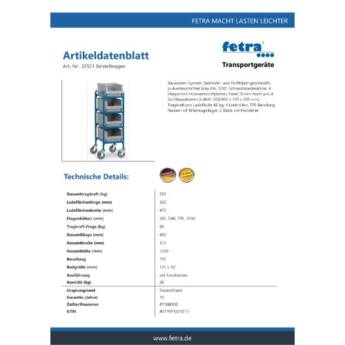 | Variante: | FETRA Beistellwagen 32921 - mit 4 Kästen |
