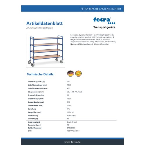 Eigenschaften "FETRA Beistellwagen 32950 - mit Böden"