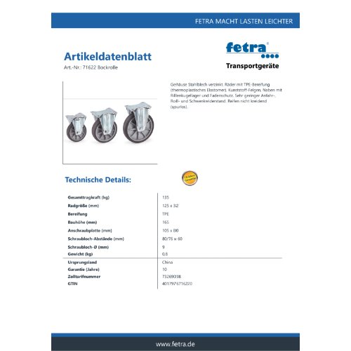 Eigenschaften "FETRA Bockrolle 125 x 32 mm, 71622"