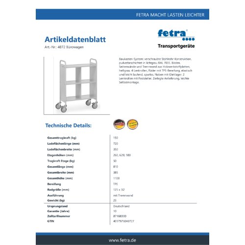 Eigenschaften "FETRA Bürowagen 4872"