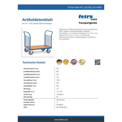 Produktinformationen "FETRA Doppel-Stirnwandwagen 1520"