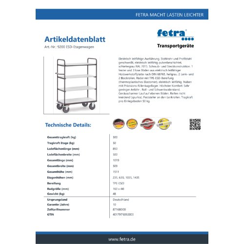 Produktinformationen "FETRA ESD-Etagenwagen 9200"