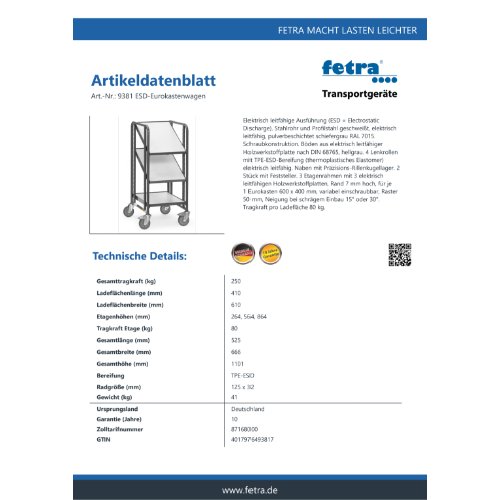 Eigenschaften "FETRA ESD-Eurokastenwagen 9381 - mit Böden"