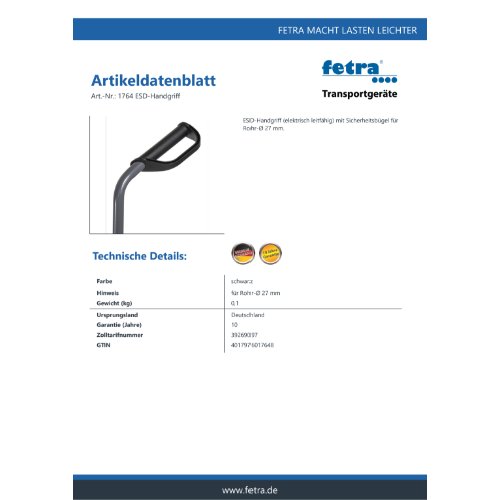 Eigenschaften "FETRA ESD-Handgriff mit Sicherheitsbügel, 1764"