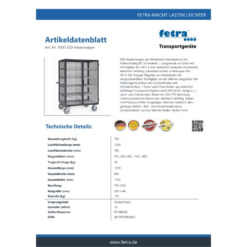 Produktinformationen "FETRA ESD-Kastenwagen 9393"