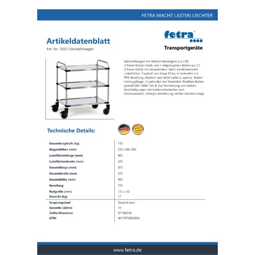 Eigenschaften "FETRA Edelstahlwagen 5005"