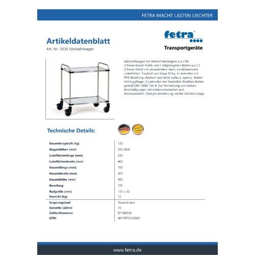 Eigenschaften "FETRA Edelstahlwagen 5036"