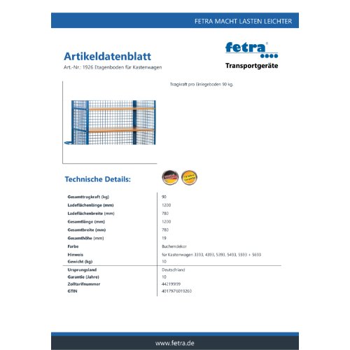 Eigenschaften "FETRA Etagenboden für 3393 - 5593 - Zubehör -, 1926"