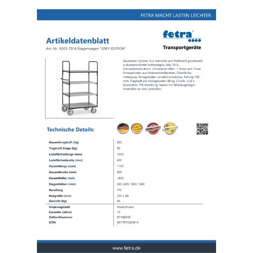 Eigenschaften "FETRA Etagenwagen 8301-7016"