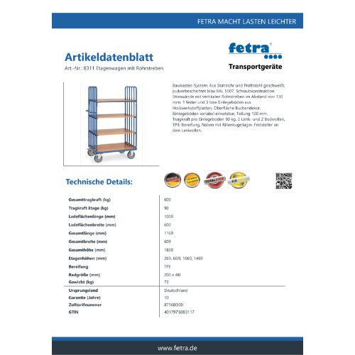 Eigenschaften "FETRA Etagenwagen 8311"
