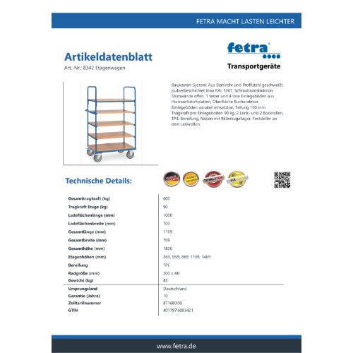 Eigenschaften "FETRA Etagenwagen 8342"