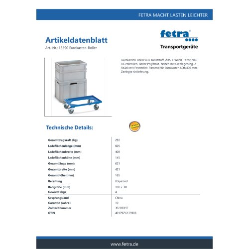 Eigenschaften "FETRA Eurokasten-Roller 13590"