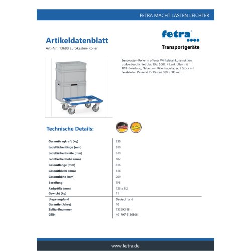 Eigenschaften "FETRA Eurokasten-Roller 13680"