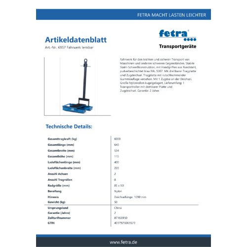 Eigenschaften "FETRA Fahrwerk, lenkbar 6957"